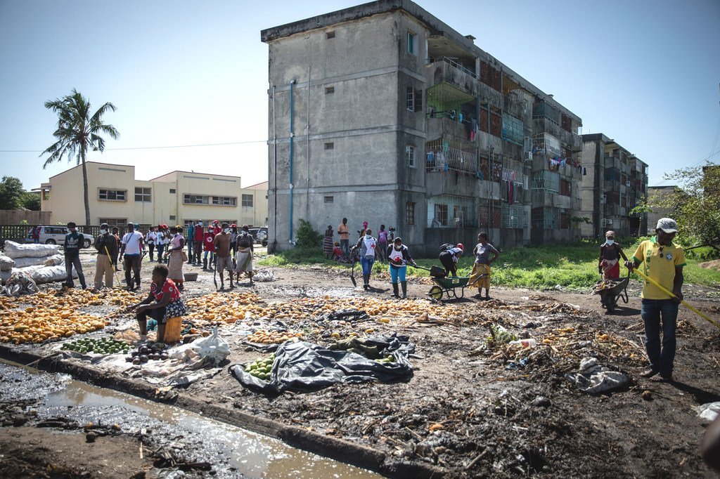 Aspeto da destruíção do ciclone Kenneth em Macomia, em Cabo Delgado
