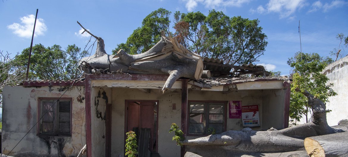 IFRC/Stephen Ryan Em resposta a riscos, o país tem apostado num modelo descentralizado de adaptação climática Aspeto da destruíção do ciclone Kenneth em Macomia, em Cabo Delgado